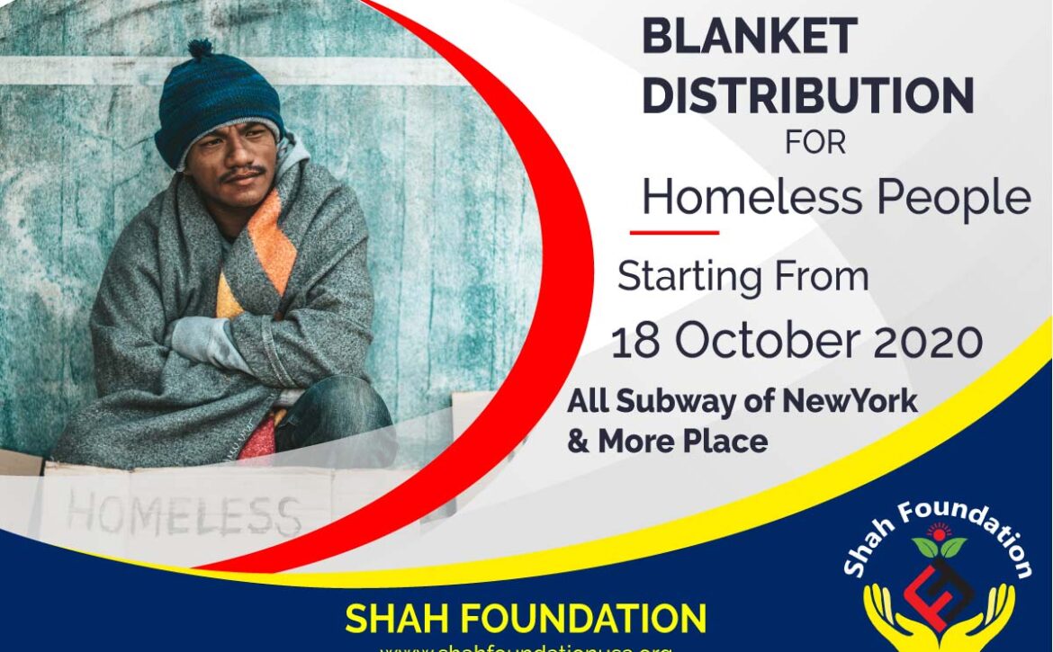 So Shah Foundation Planning a Distribution Blanket for Homeless people to all Subways in NewYork City. This event Starting from on 18 October 2020. We are always here for those homeless people.