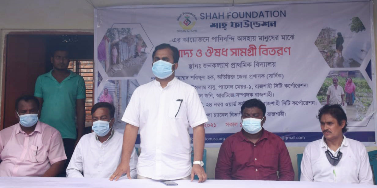 Distribution of food and medicine items among waterlogged helpless people in Rajshahi