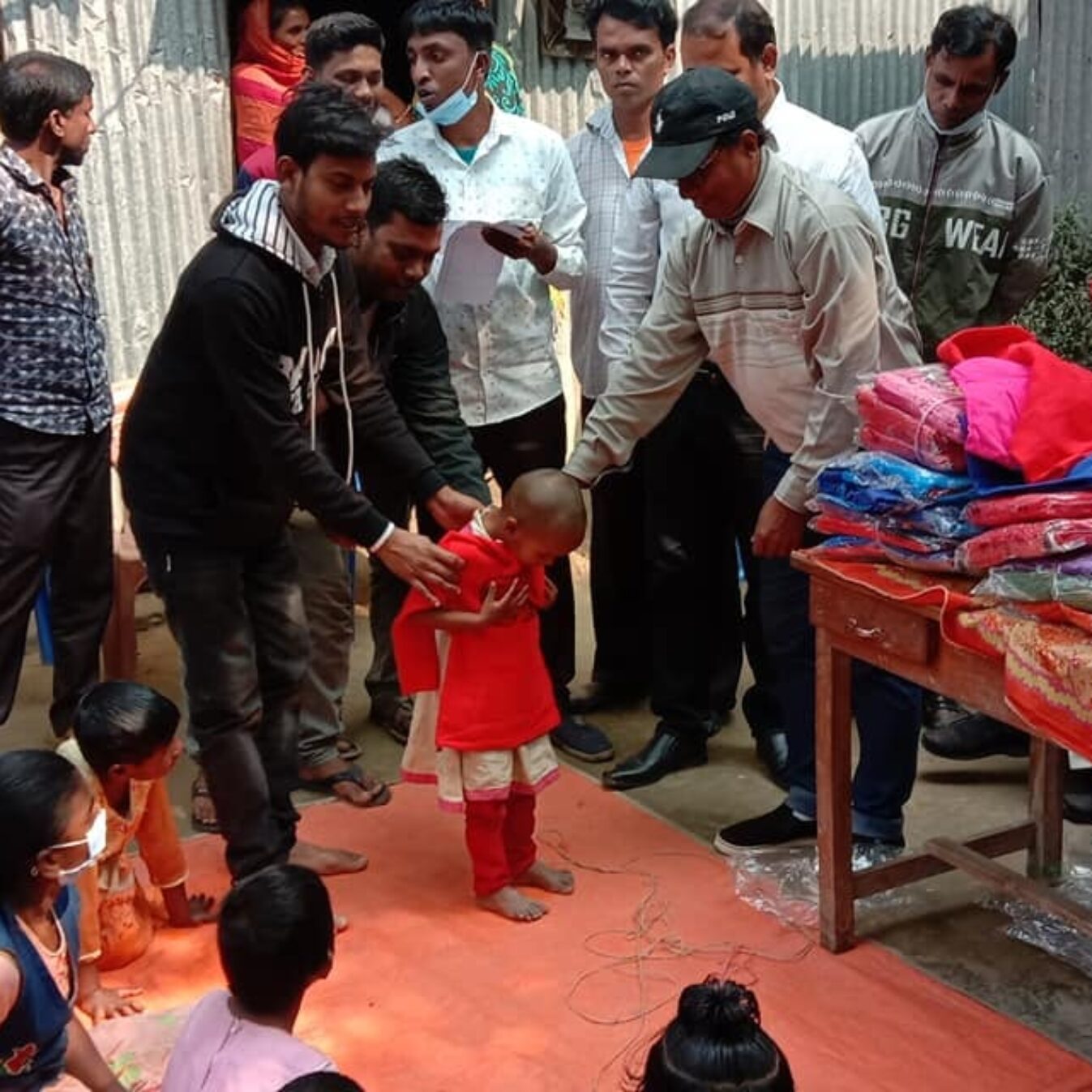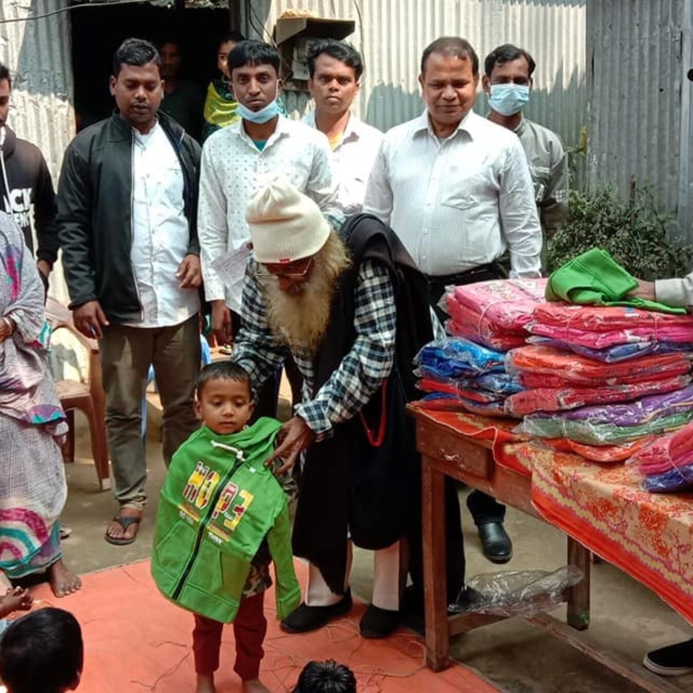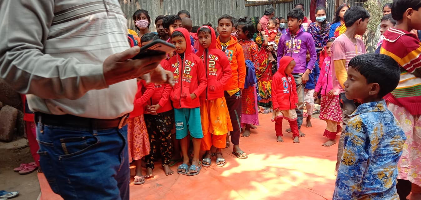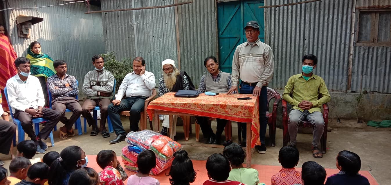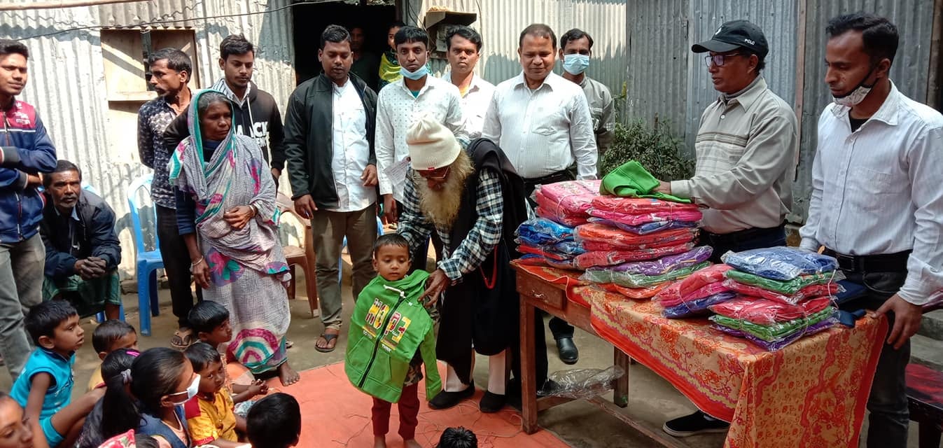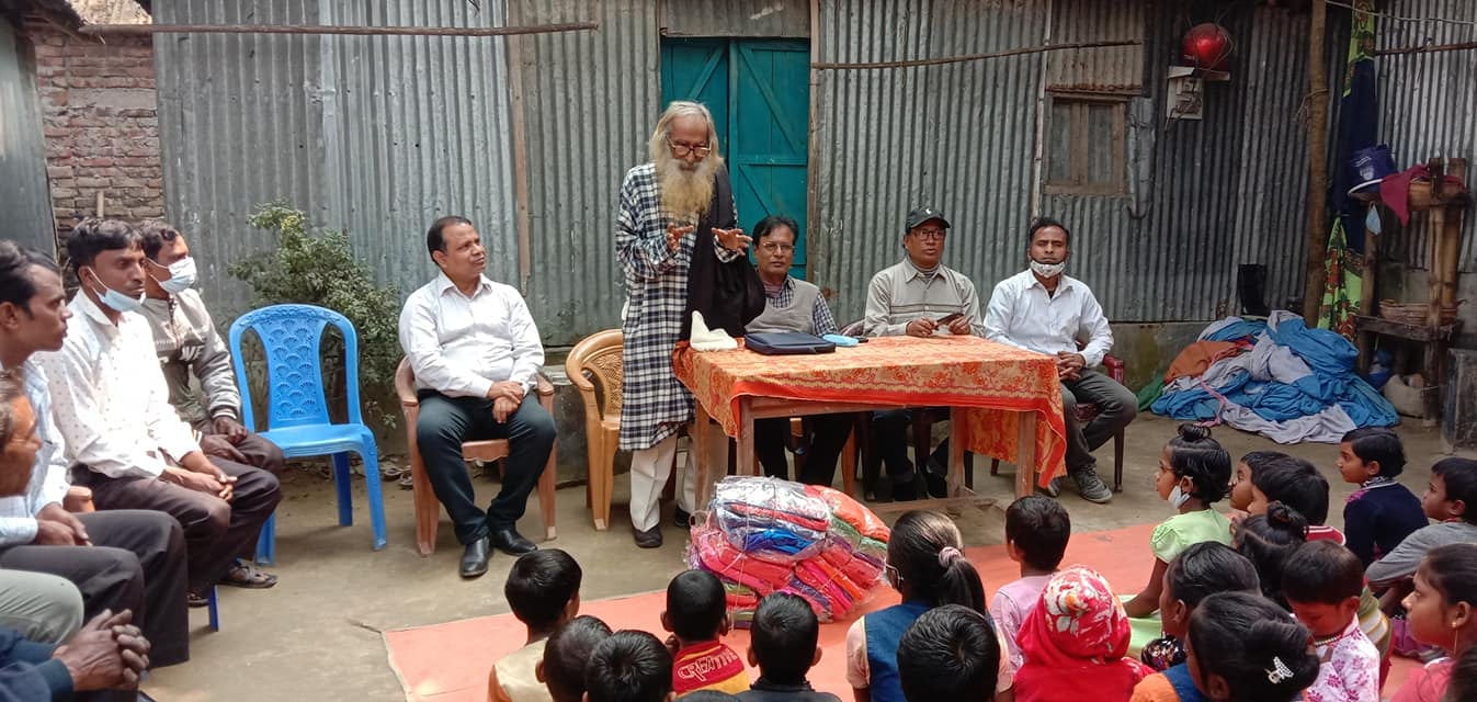 Winter clothes distributed among the children and students of the Dalit class Ravi Das family at Gaibandha